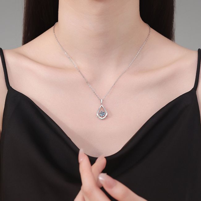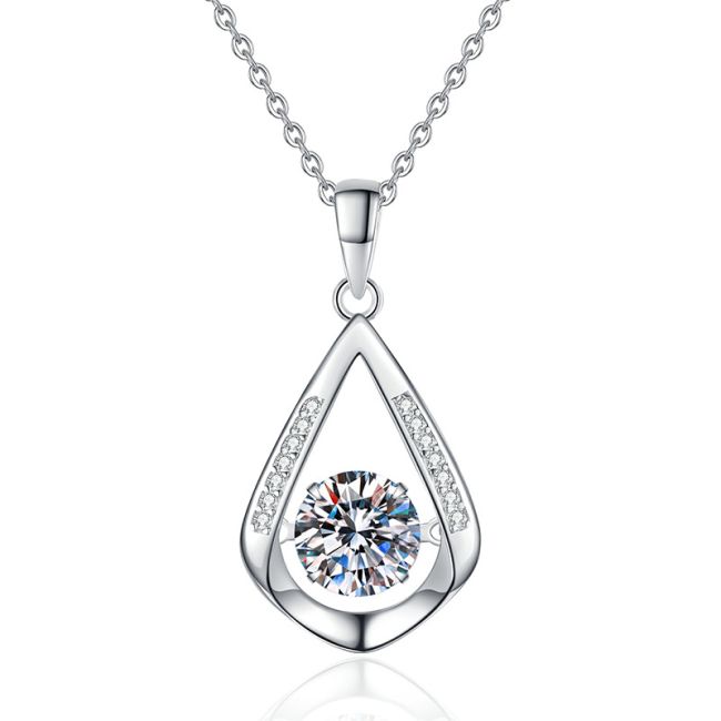 - Design: Elegant teardrop shaped pendant with dancing stone feature