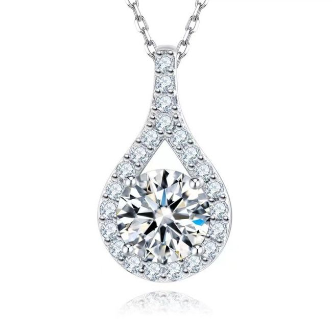 Necklace Sterling Silver Teardrop Pendant with Moissanite Stone Elegant Collarbone Chain