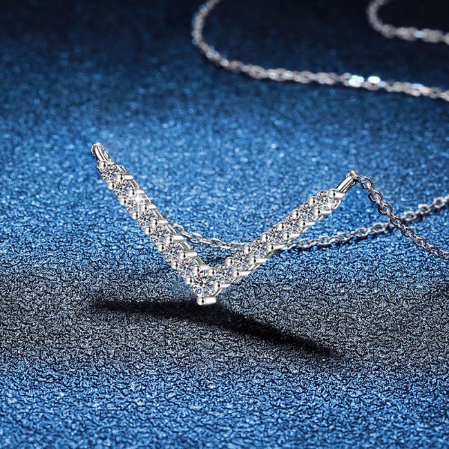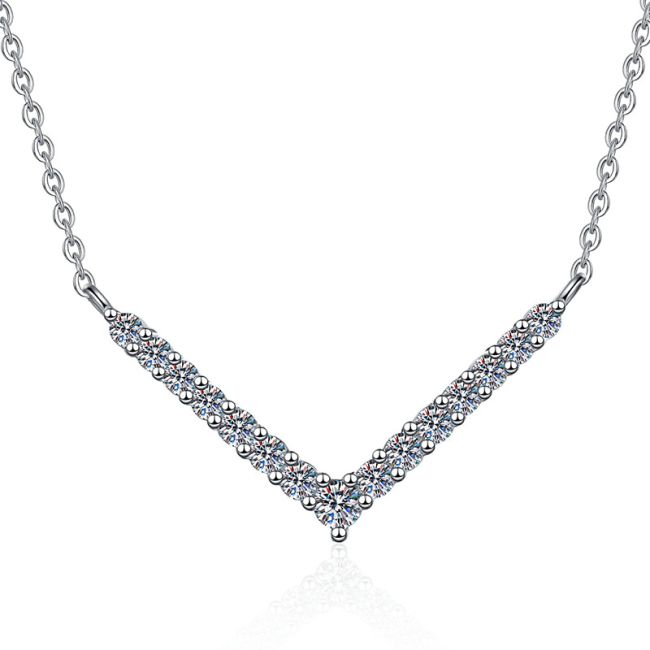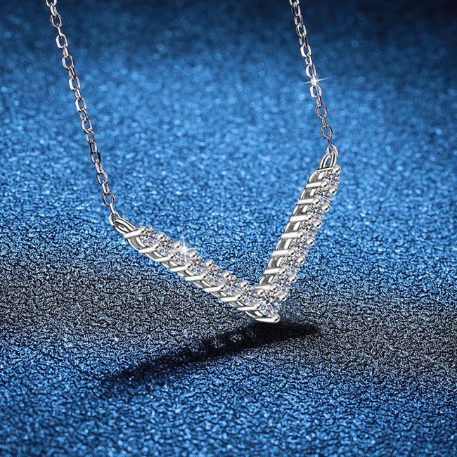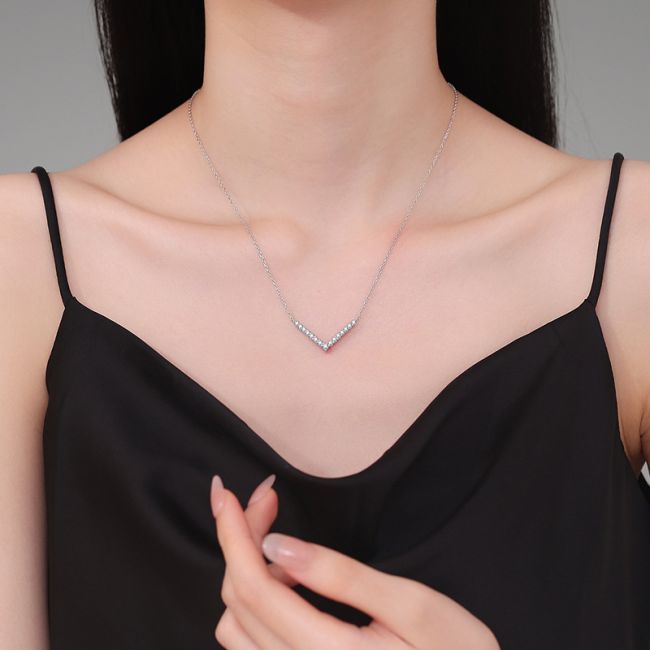 Necklace Sterling Silver V-Shaped Smile Pendant with D Color Moissanite Stones Collarbone Chain