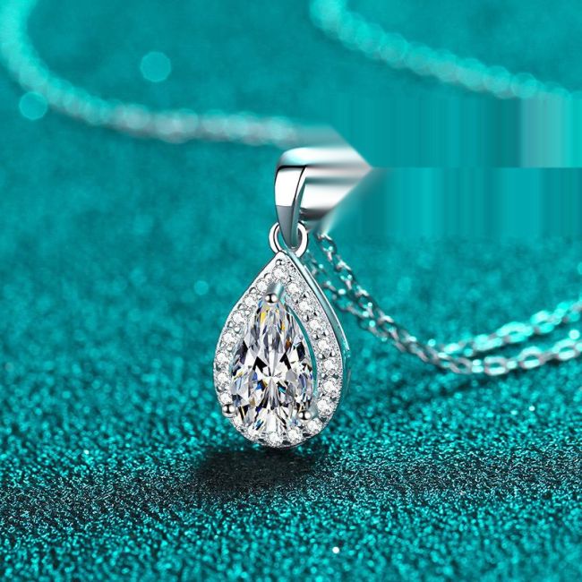 Pear Shaped Moissanite Necklace with 925 Sterling Silver Plated PT950 Gold and Cluster Setting
