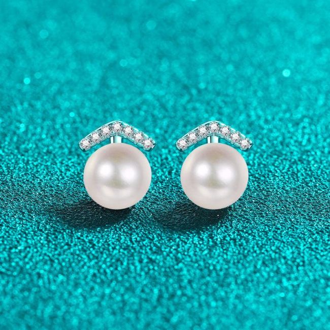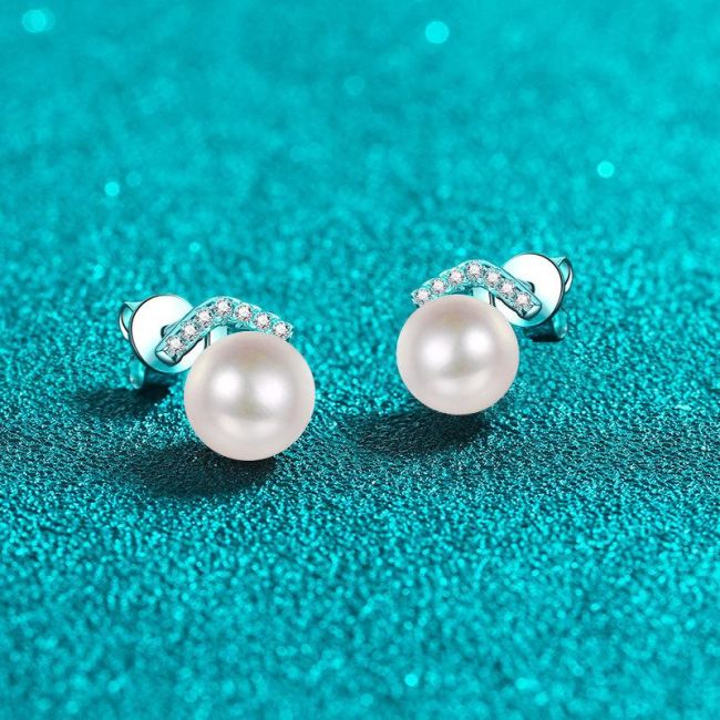 - Color: 8-9mm Freshwater Pearl with 11-point Moissanite Accents
