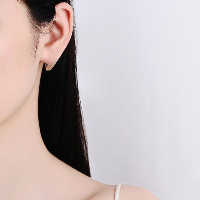 Rose Gold Plated Oval Moissanite Stud Earrings with 925 Sterling Silver U-Shaped Design