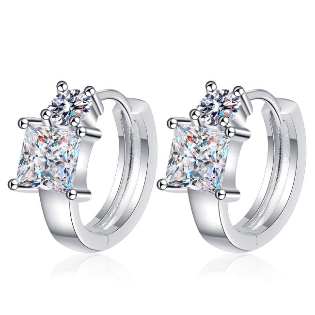 Princess Cut Moissanite Stud Earrings with 7A Zirconia Accents in Platinum-Plated 925 Sterling Silver