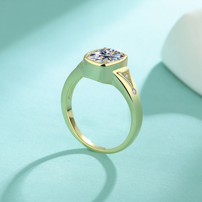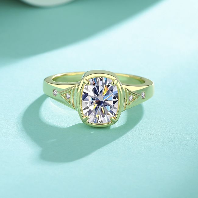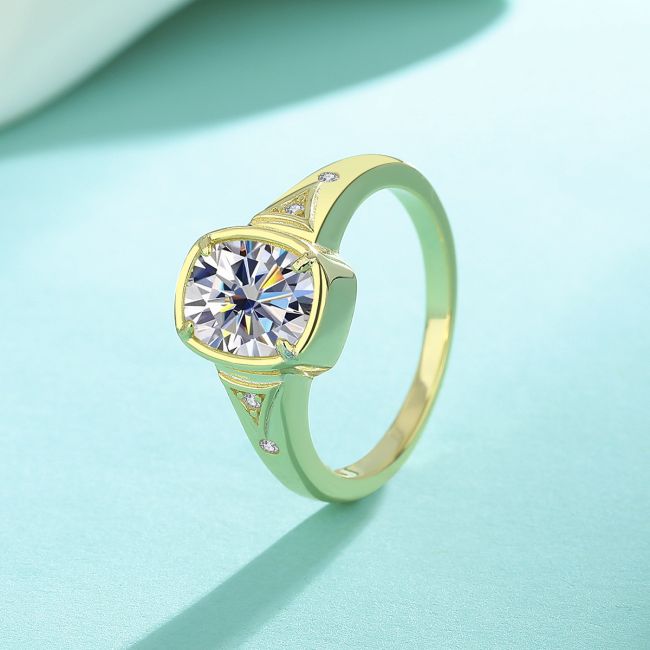 Ring 3 Carat Cushion Cut Moissanite Solitaire Engagement Ring 14K Gold Plated