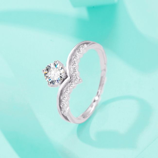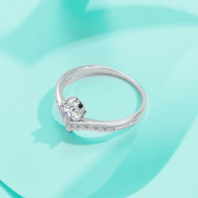 Ring S925 Sterling Silver Four Prong Moissanite Delicate Band Minimalist Fashion Stackable