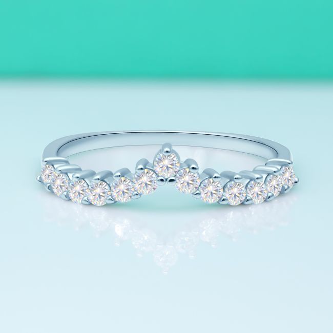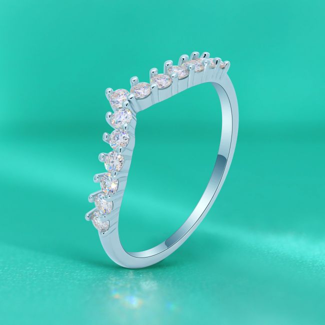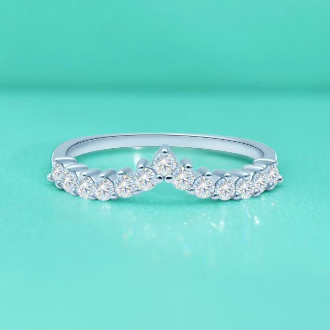 Ring Delicate V-Shaped Moissanite Stackable Band in S925 Sterling Silver