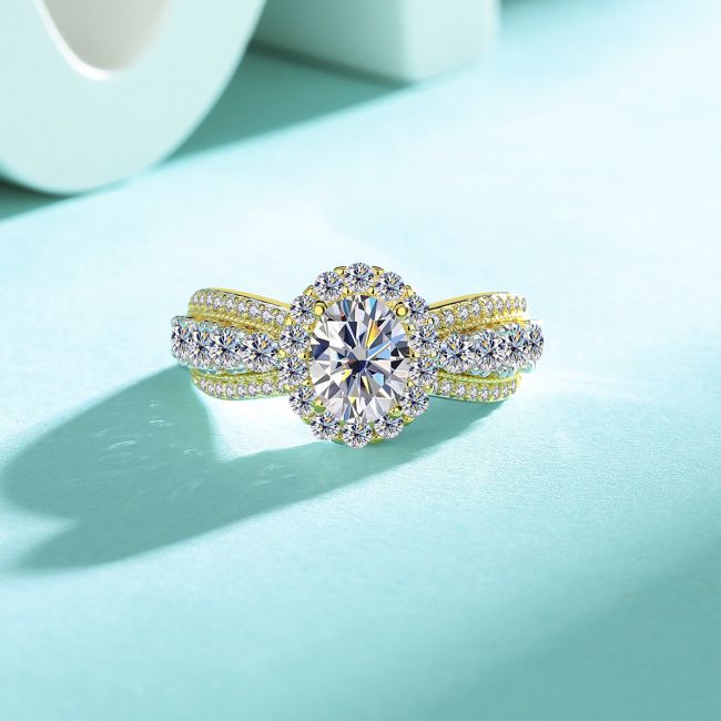 Ring Elegant 1.5 Carat Oval Moissanite Sterling Silver Two-Tone Court Style Statement Ring