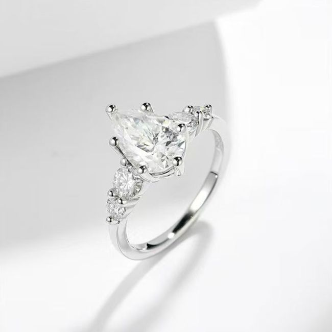 Ring Elegant 3 Carat Teardrop Moissanite Sterling Silver Statement Ring for Women
