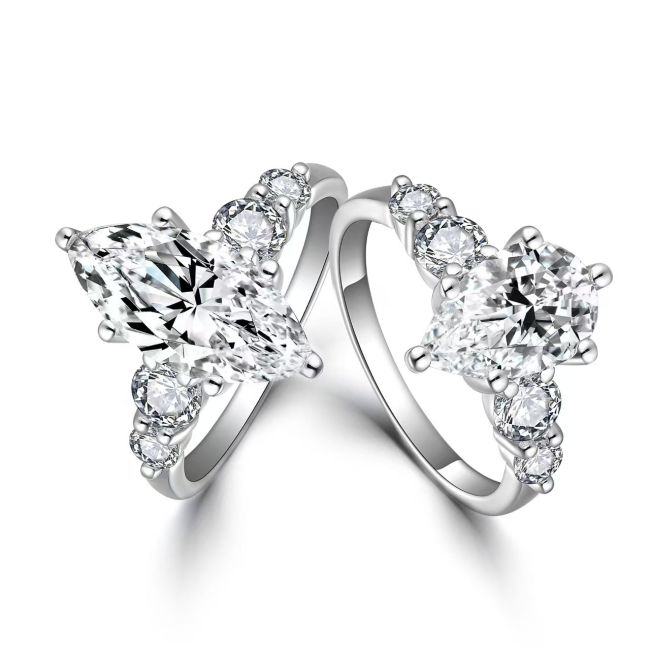 Ring 3 Carat Marquise Cut Moissanite Sterling Silver Statement Fashion Ring