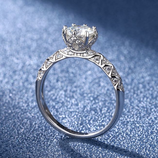 Ring - Elegant Cross Eight-Prong Moissanite Sterling Silver Statement Ring