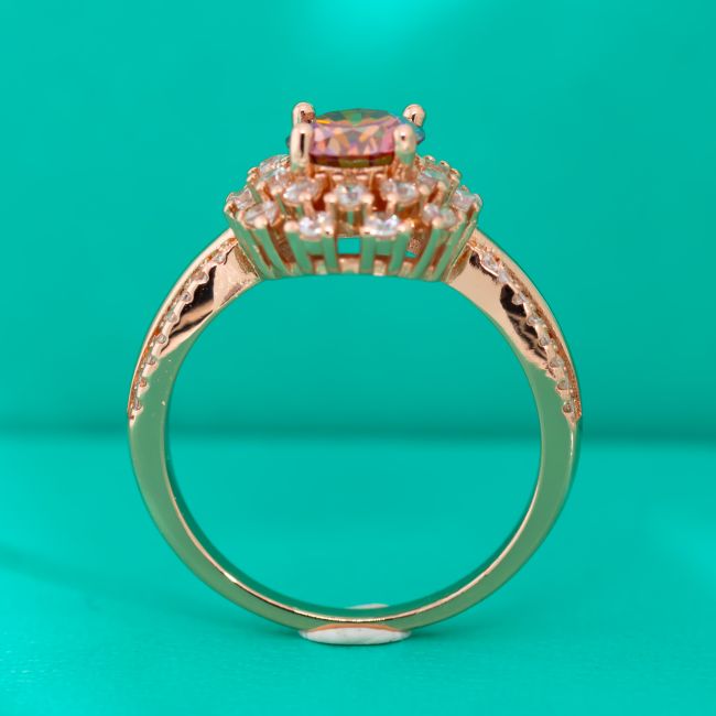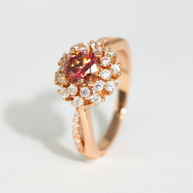 Ring Flower Design Moissanite Sterling Silver Adjustable Open Band in Champagne Gold Tone