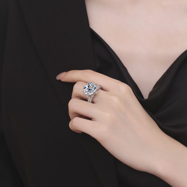 Ring Luxury 10 Carat Moissanite Sterling Silver Statement Ring for Women
