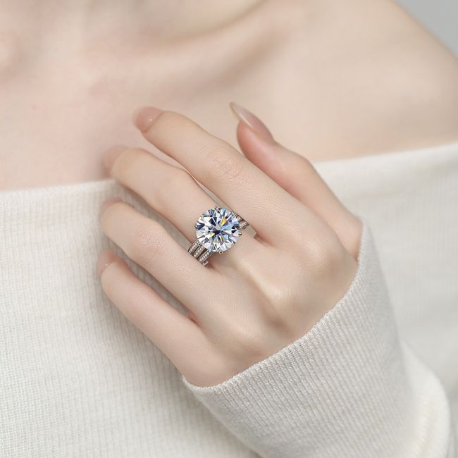 Ring Luxury 10 Carat Moissanite Sterling Silver Statement Ring for Women