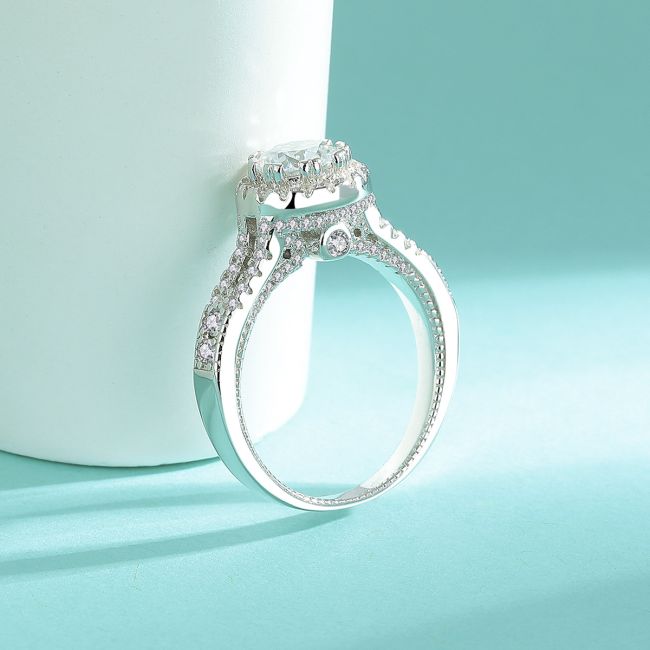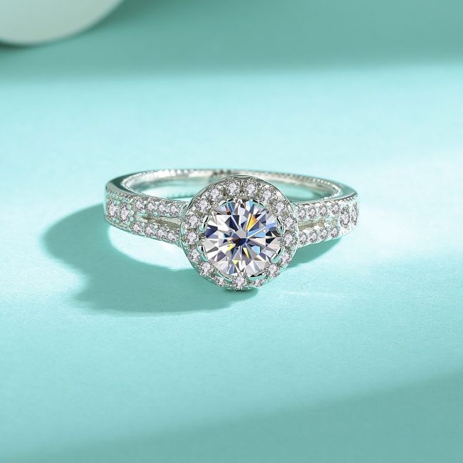 Ring Luxury S925 Sterling Silver Moissanite Round Halo Engagement Ring with Platinum Plating