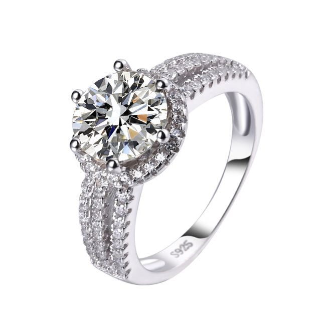 Ring Luxury Six-Prong Moissanite Engagement Ring in S925 Sterling Silver with D Color Stone