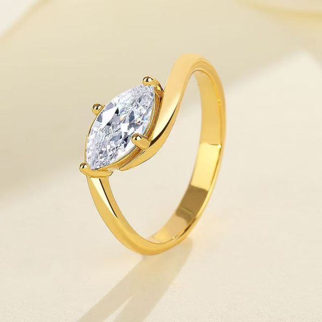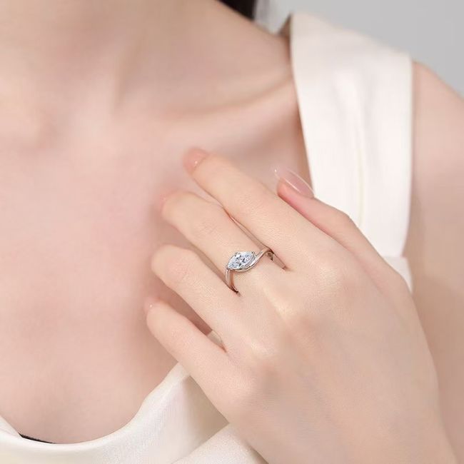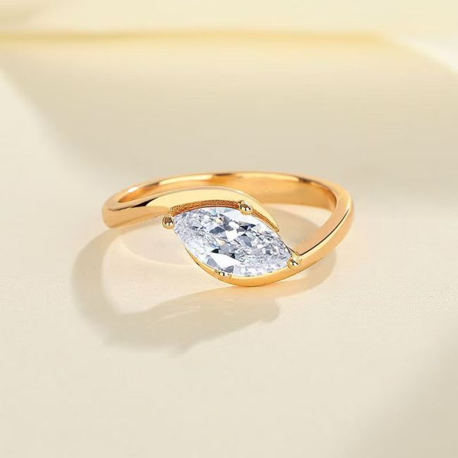 Ring Marquise Cut Moissanite Sterling Silver Wedding Engagement Band for Women