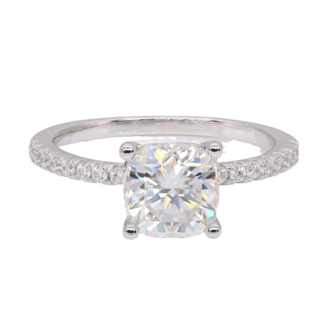 Ring Princess Cut Moissanite Four Prong Setting Sterling Silver Stackable Band