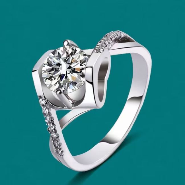 Ring Luxury Six-Prong Moissanite Engagement Ring in S925 Sterling Silver with D Color Stone