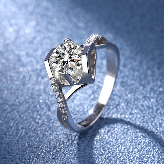Ring S925 Sterling Silver Angel's Kiss Moissanite Engagement Ring with Adjustable Band