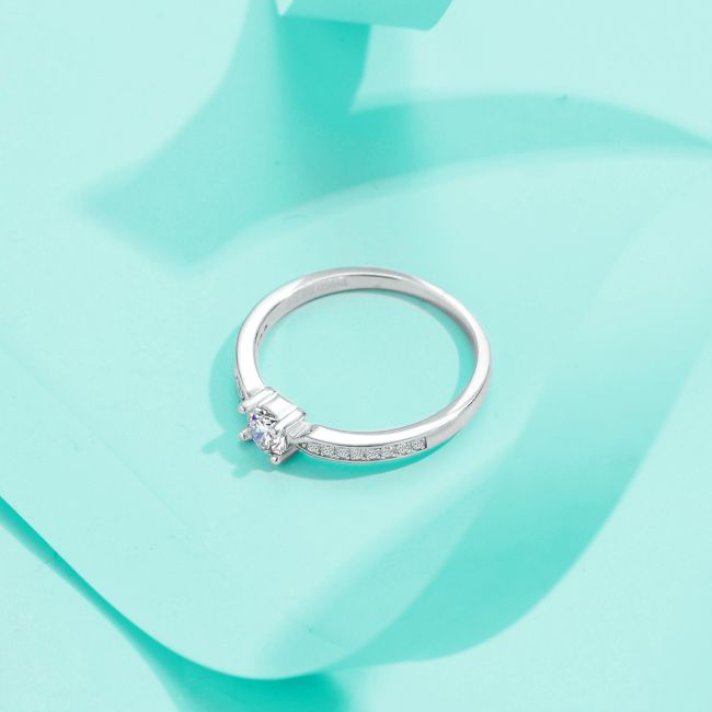 Ring S925 Sterling Silver Four Prong Moissanite Delicate Band Minimalist Fashion Stackable