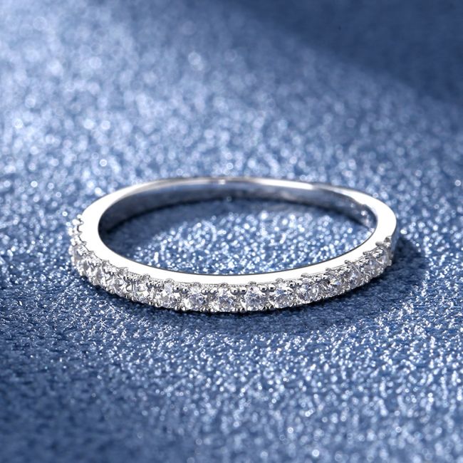 Ring S925 Sterling Silver Moissanite Minimalist Delicate Band Slim Design