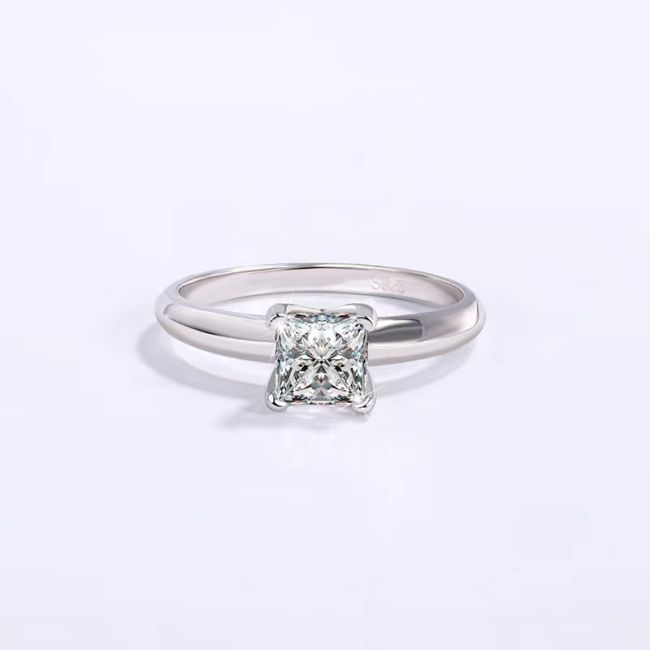 Ring S925 Sterling Silver Moissanite Princess Cut Open Adjustable Minimalist Birthday Gift