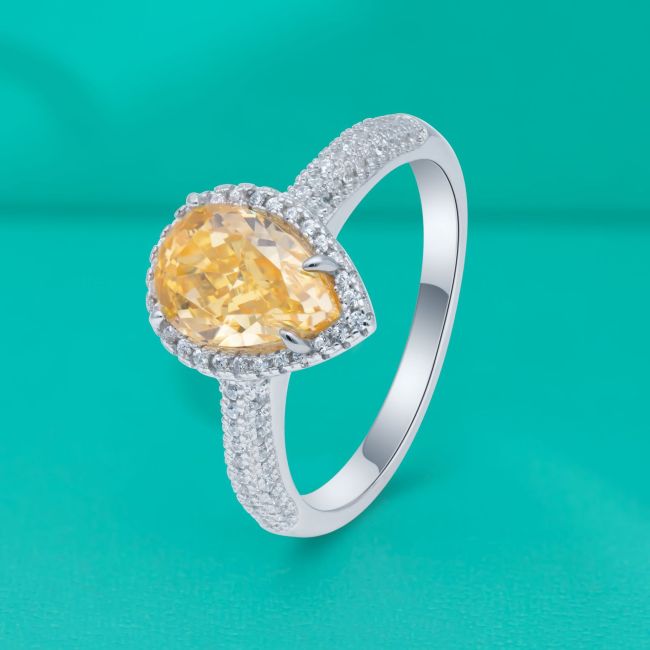 Ring S925 Sterling Silver Teardrop Ice Flower Cut Crystal Ring for Women