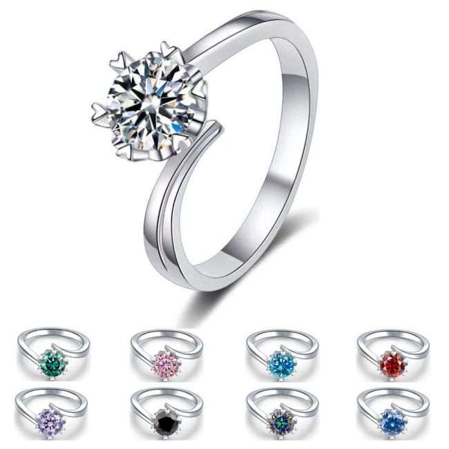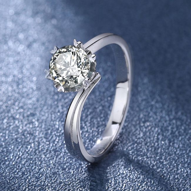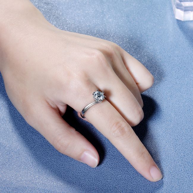 Ring Luxury Six-Prong Moissanite Engagement Ring in S925 Sterling Silver with D Color Stone