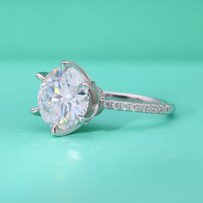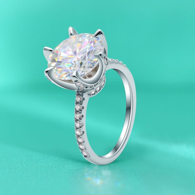 Ring Six-Prong Moissanite Sterling Silver Adjustable Open Band Statement Ring