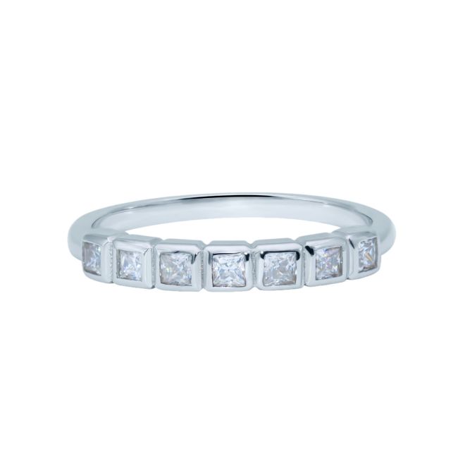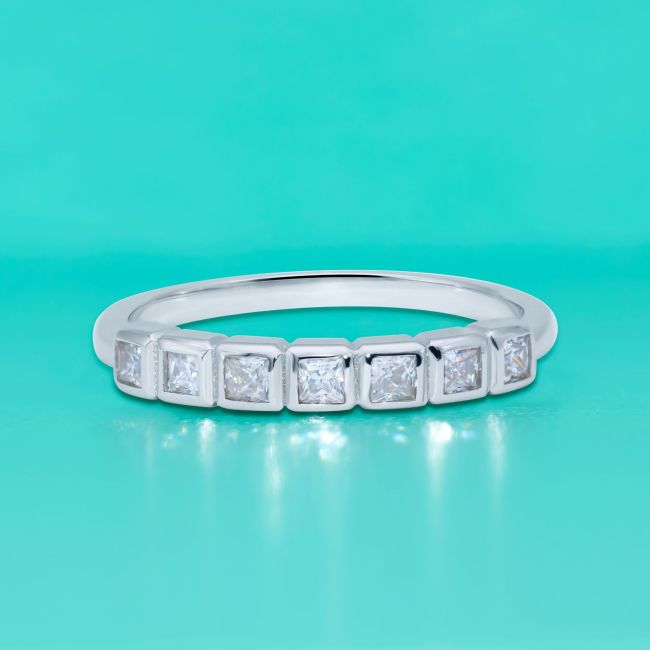 Ring Square Moissanite Eternity Band in S925 Sterling Silver Minimalist Stackable Design