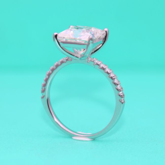 Ring Princess Cut Moissanite Four Prong Setting Sterling Silver Stackable Band