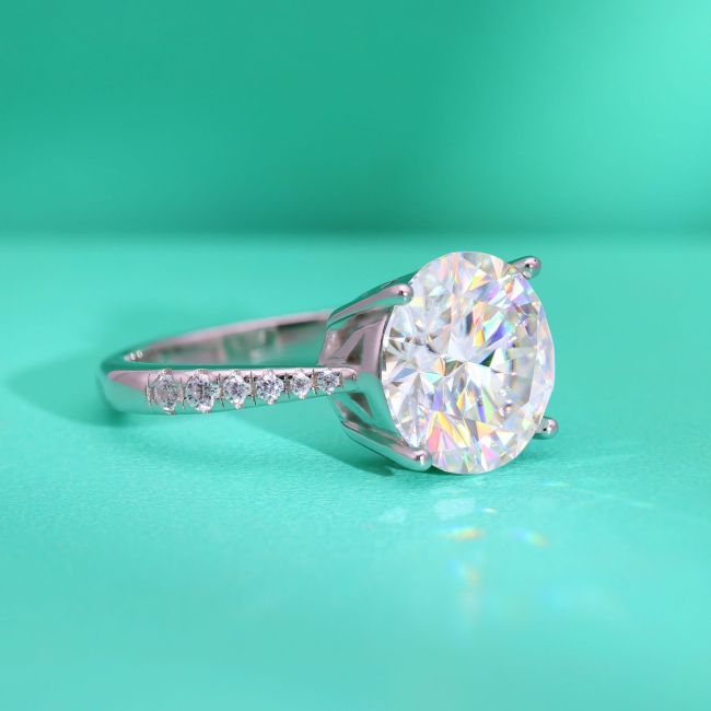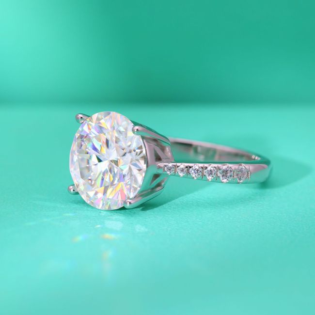 Ring Six-Prong Moissanite Sterling Silver Adjustable Open Band Statement Ring