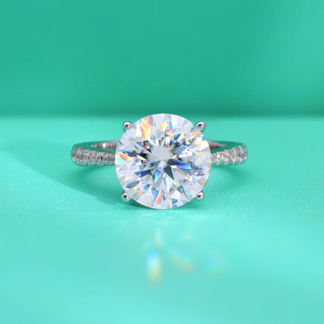 Ring Sterling Silver Four Prong Moissanite Adjustable Open Band with Brilliant Cut Stone