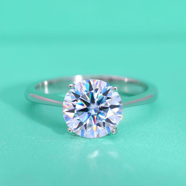 Ring Sterling Silver Four Prong Moissanite Solitaire Engagement Ring with Adjustable Band