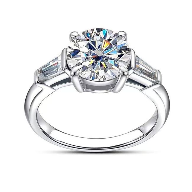 Ring Sterling Silver Four Prong Solitaire 3 Carat Moissanite Diamond Engagement Ring