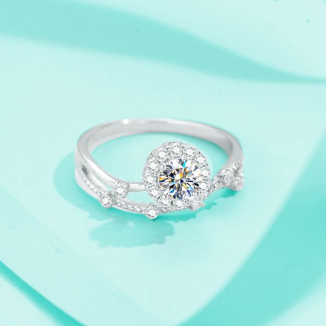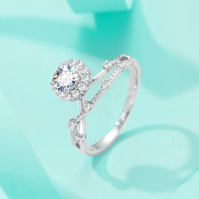 Ring Sterling Silver Six Prong Moissanite Solitaire Engagement Ring Minimalist Delicate Design