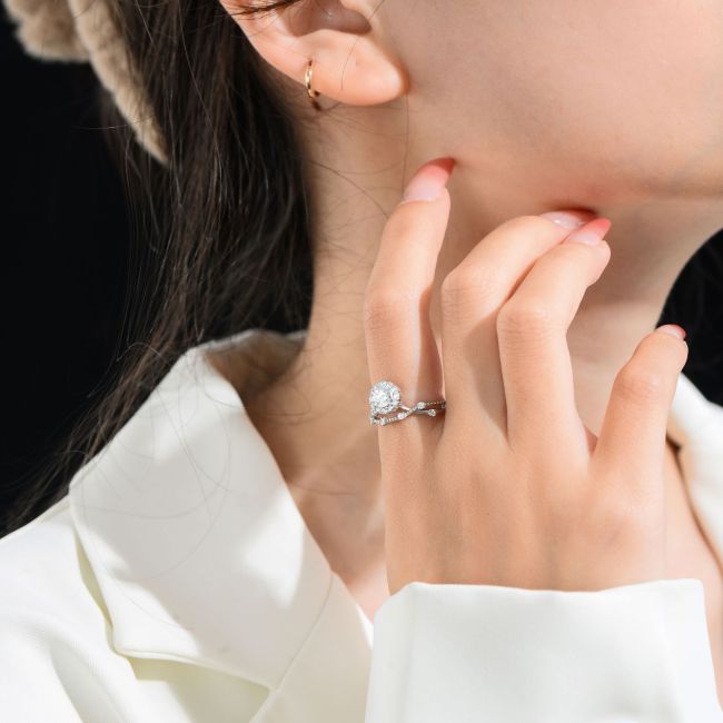 Ring Sterling Silver Moissanite Delicate Band Minimalist Fashion Micro Pave Setting