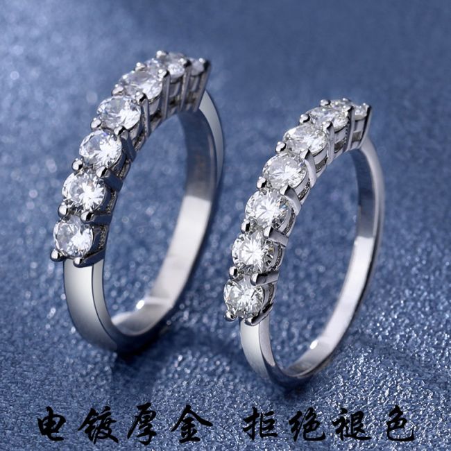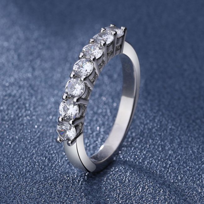 Ring Sterling Silver Moissanite Seven Stone Stackable Band D Color 1 Carat