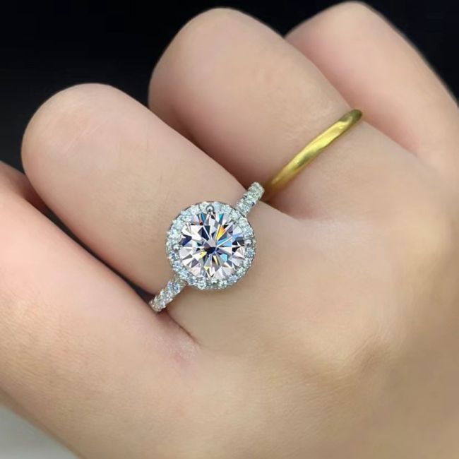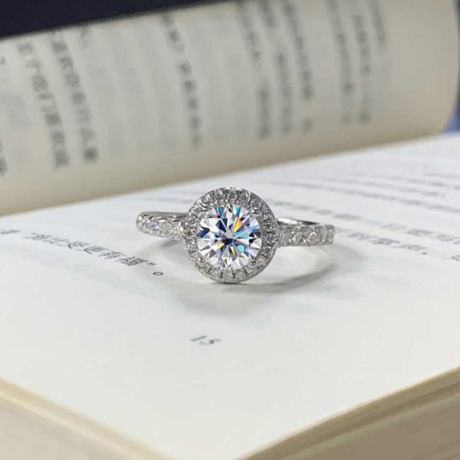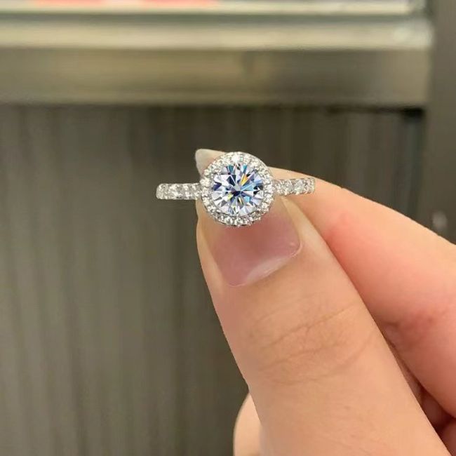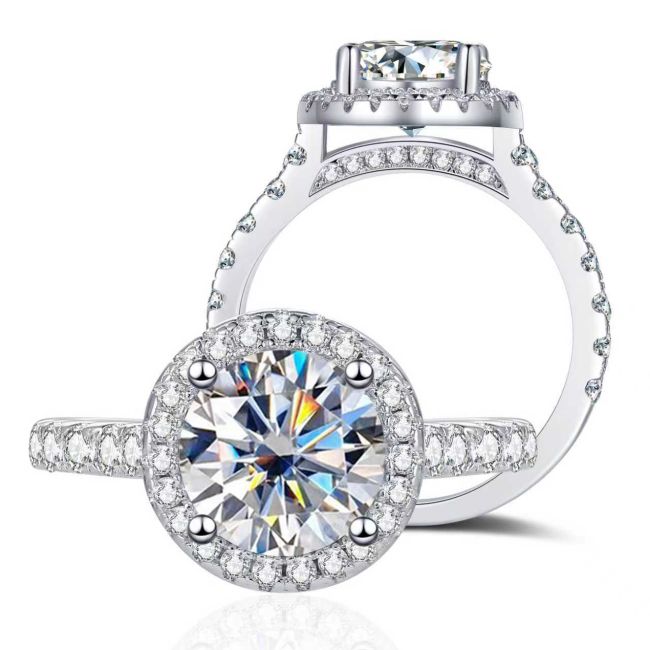 Ring Sterling Silver Moissanite Square Halo Closed Band Fashion Statement Ring