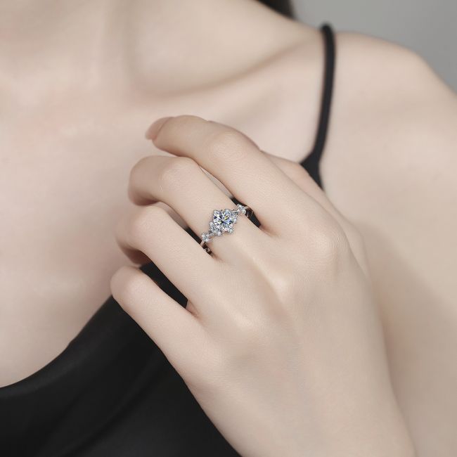 Ring Sterling Silver Moissanite Zirconia Minimalist Luxury Fashion Statement Ring