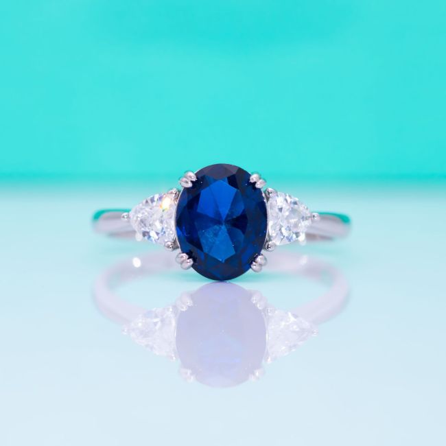 Ring Sterling Silver Oval Gemstone Zirconia Teardrop Statement Cocktail Jewelry