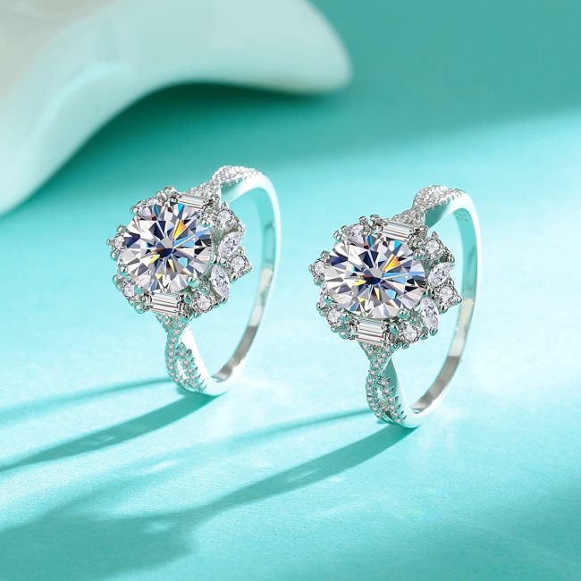 Ring Sterling Silver 925 Moissanite 1 Carat Diamond Cut Engagement Ring D Color