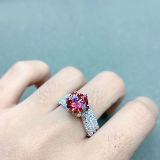 Ring Elegant Moissanite Row Band Open Design Sterling Silver Plated Luxury Round Stone Fashion
