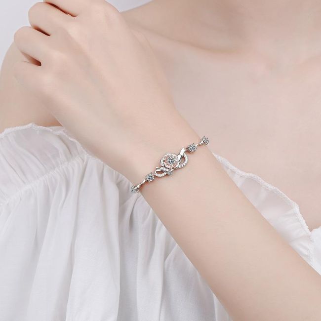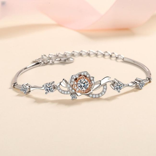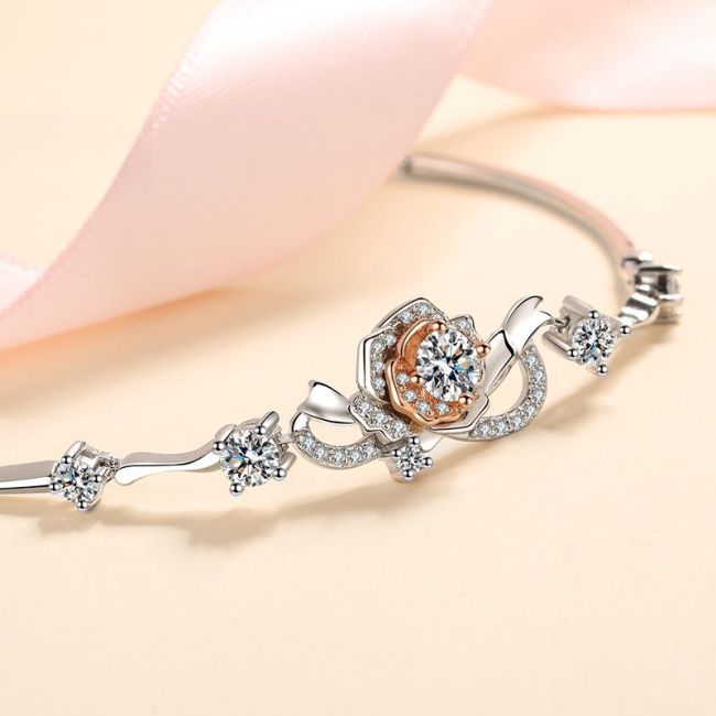 Rose Flower Bracelet with 1.4 Carat Moissanite and 7A Zircon Stones in S925 Silver with Dual-Tone Plating