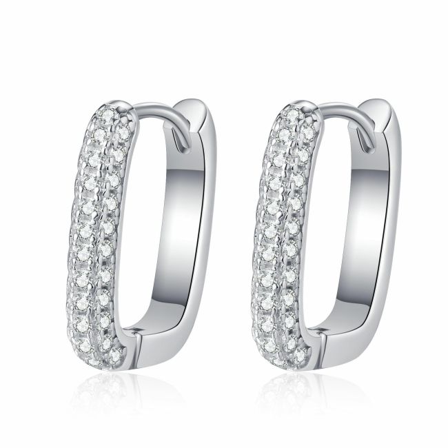 Square Earrings with Double Row Moissanite in Platinum-Plated 925 Sterling Silver Minimalist Geometric Design