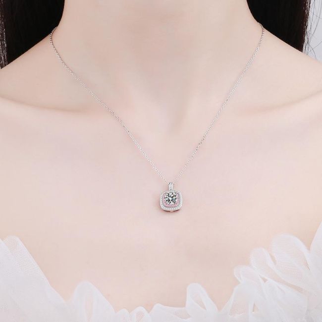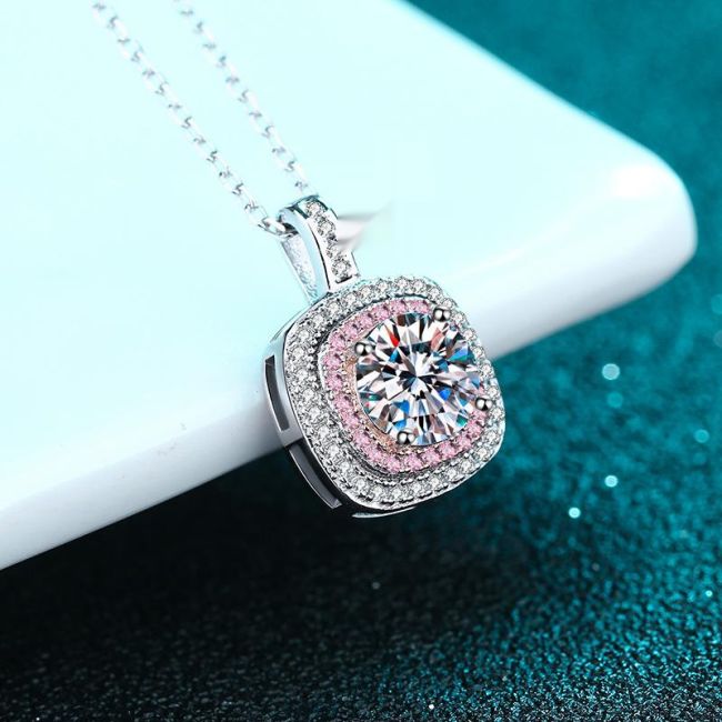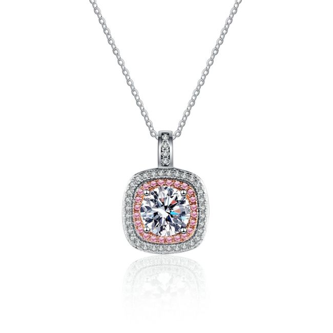 Square Moissanite Pendant Necklace with Micro-Pave Border in Sterling Silver for Women