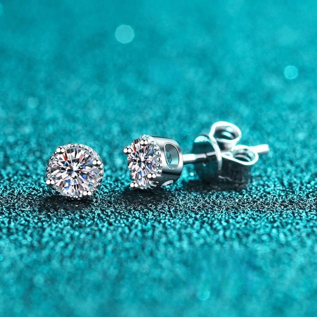 Sterling Silver Six-Prong Earrings with Moissanite and Zircon Options