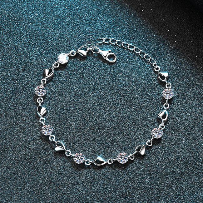 Women's 925 Sterling Silver Moissanite Chain Bracelet with Fresh Summer Style