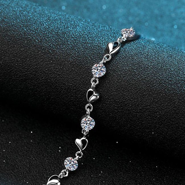 Sterling Silver Moissanite Heart Bracelet with 5mm Zircon Accents and Platinum Plating