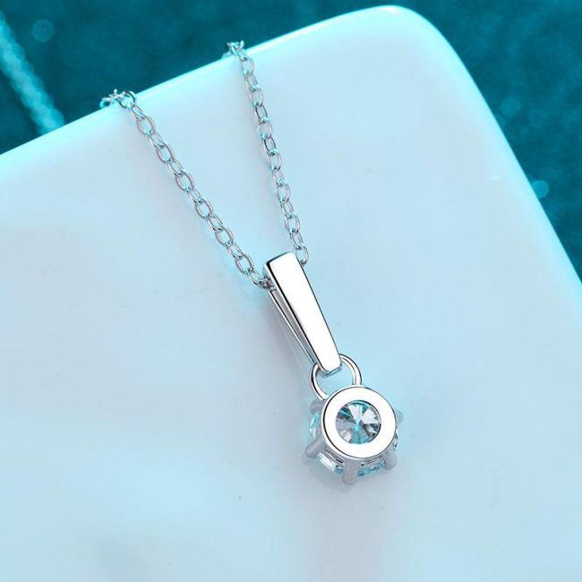 Princess Cut Moissanite Pendant Necklace with Four-Prong Setting in Sterling Silver